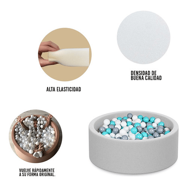 Material polietileno seleccionado de alta calidad: la piscina de bolas de espuma está hecha de espuma viscoelástica de alta calidad respetuosa con el medio ambiente y saludable, suave y duradera (no contiene sustancias nocivas), no se deforma fácilmente, ideal para bebés y niños. La superficie lisa y la parte inferior antideslizante proporcionan un lugar seguro y cómodo que tu pequeño juegue. Al mismo tiempo, el clásico diseño gris claro se adapta perfectamente a la mayoría de los entornos del hogar.